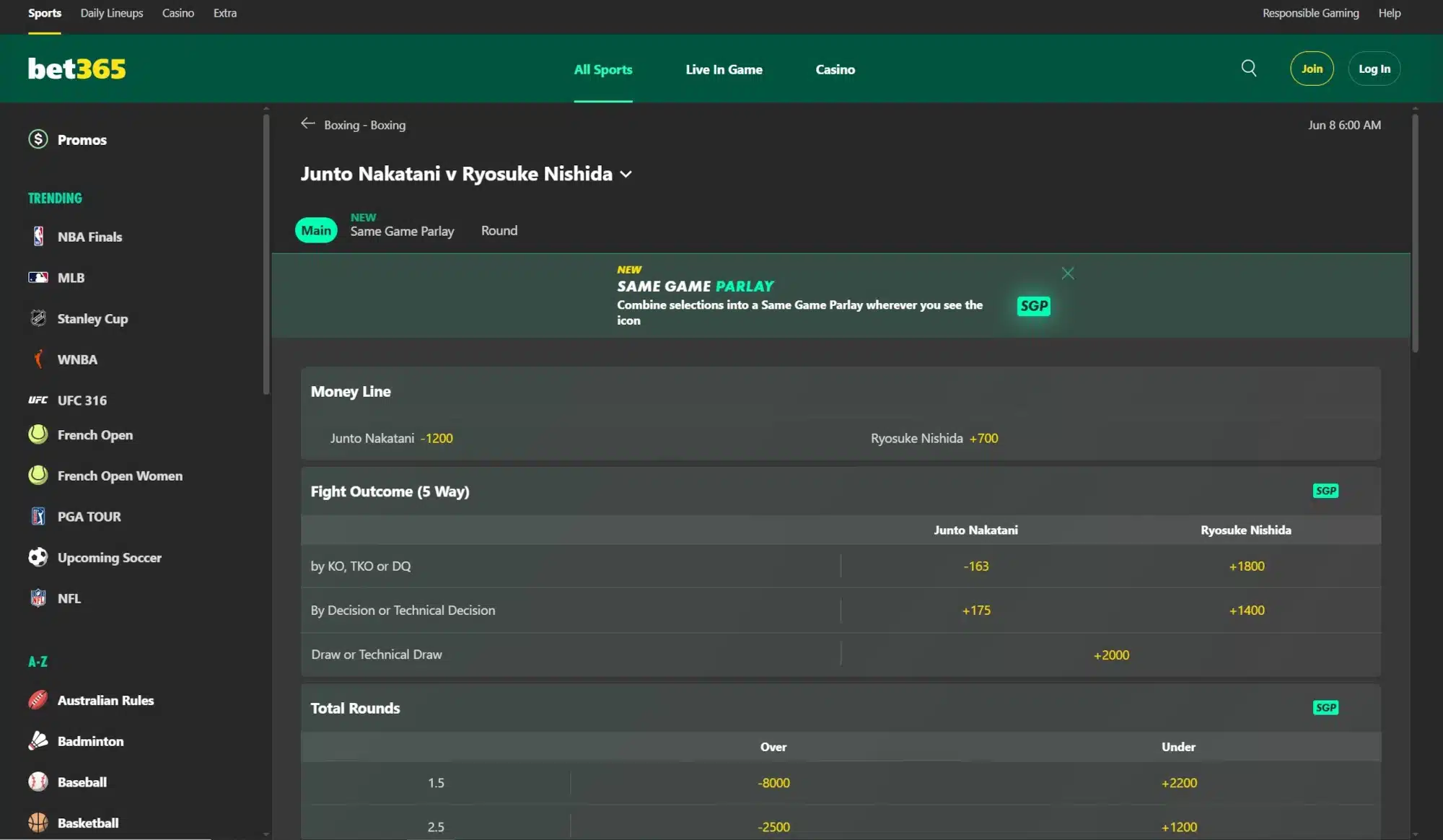 bet365 is one of the best boxing, MMA, and UFC betting sites in Canada, offering a treasure trove of boxing prop bets, futures, and moneyline options. Whether you want to wager on who’ll be the next champ or dive into the nitty-gritty of how a fight will unfold, bet365’s got you covered.