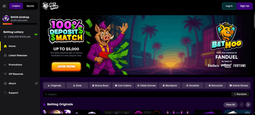 BetHog Casino burst onto the scene in late 2024, backed by FanDuel co-founders Nigel Eccles and Rob Jones. This crypto-only casino and sportsbook runs on sleek blockchain tech and rolls out the red carpet for Canadians with seamless crypto transactions, a stacked lineup of classic casino games, and exclusive BetHog Originals you won’t find anywhere else—perfect for pigging out on playtime!