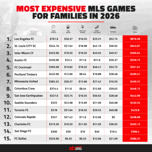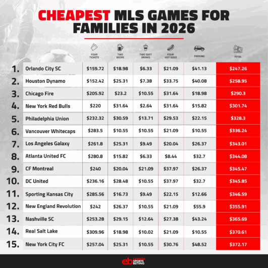 A new Canada Sports Betting analysis ranks MLS stadiums based on the average total cost for a family of four to attend a match. By combining ticket prices, concessions, and parking costs, we identified which clubs offer the most accessible match-day experiences — and which markets demand a premium.